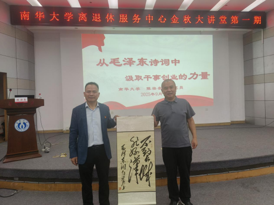 讲座过程中穿插了互动环节,不少老同志慷慨激昂地背诵毛泽东诗词,现场气氛热烈。陈柒叁研究员还向参与互动的同志赠送了亲笔书写的毛泽东诗词书法作品,赢得阵阵掌声。