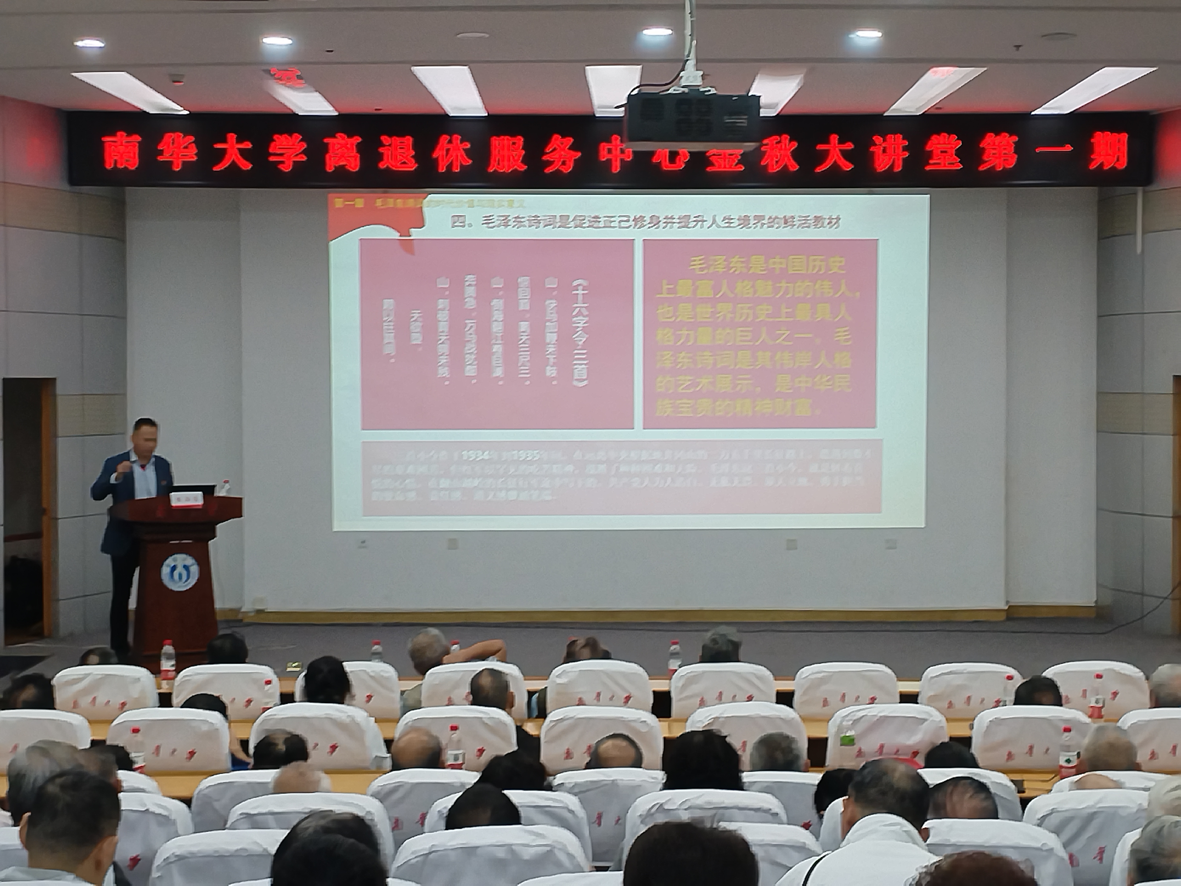 9月26日上午,版权所有:PA视讯·游戏官网 - PlayAce在红湘校区图书馆学术报告厅举办“金秋大讲堂”第一期活动,特邀研究员陈柒叁作《从毛泽东诗词中汲取干事创业的力量》专题讲座。活动由PA视讯平台,PA视讯,PA视讯官网书记周浩主持,PA视讯平台,PA视讯,PA视讯官网全体职工、老科技工作者协会会员、离退休党支部委员及部分党员参加。
