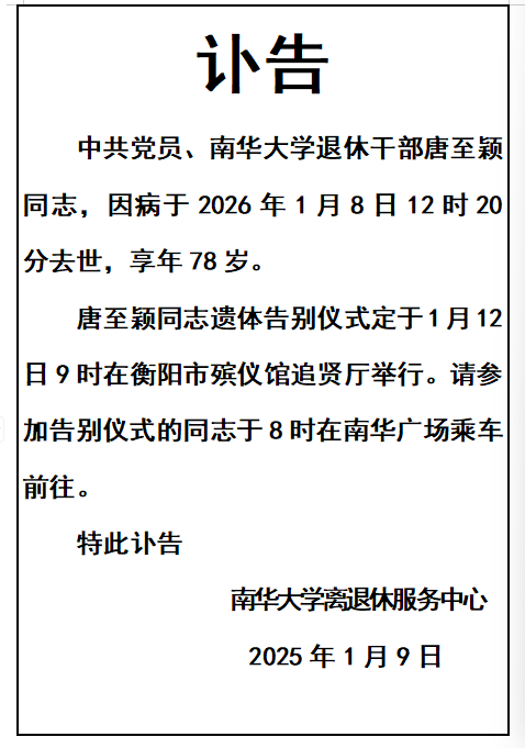 唐志颖同志讣告