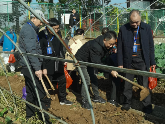 调研过程中,会员们一致认为,堰头村将党建优势转化为发展优势、治理优势,是新时代乡村振兴的典型缩影,值得深入学习借鉴。大家表示,将把此次学习成果融入学校“科技赋能乡村振兴”的探索实践中,为学校服务地方发展提供更多思路和力量。在劳动实践环节,全体会员走进田间地头,体验挖红薯的农事劳动。大家分工配合、干劲十足,在轻松愉快的劳动氛围中感受乡村丰收的喜悦,进一步增强了对农耕文化和乡村建设的直观体悟。