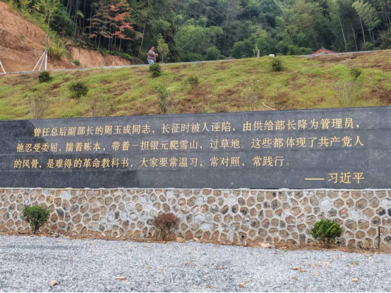 活动第二站,党支部党员前往祁阳市下马渡镇东溪源村——开国中将周玉成故居。深秋的东溪源村,绿意盎然、宁静祥和。党员们在“周玉成将军故里”石刻前聆听讲解,追忆这位平江起义亲历者、长征战士和新中国后勤奠基人波澜壮阔的一生。周玉成将军长征途中“一担银元”的故事,深深触动了在场党员。他肩负红三军团供给重任,精心保管账册和全军团生活资金,保障部队顺利渡过艰险征途;抗日战争时期,他又创办供给学校、发展军需工业,为革命事业作出卓越贡献。